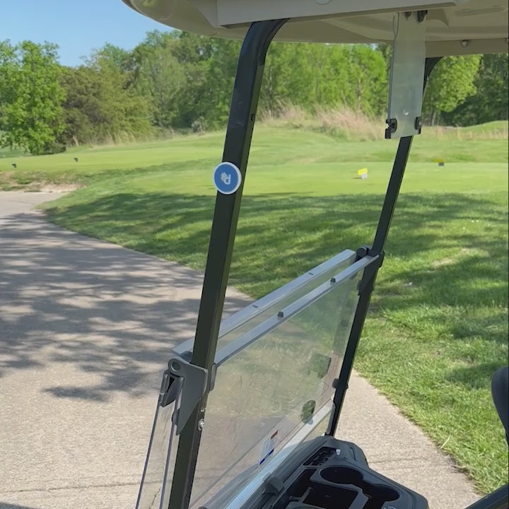 Contains a strong rare-earth magnet which attaches to the metal bars/posts on any golf cart. Also sticks to irons when you're carrying your clubs or when banging drivers during a large bucket therapy session on the range.